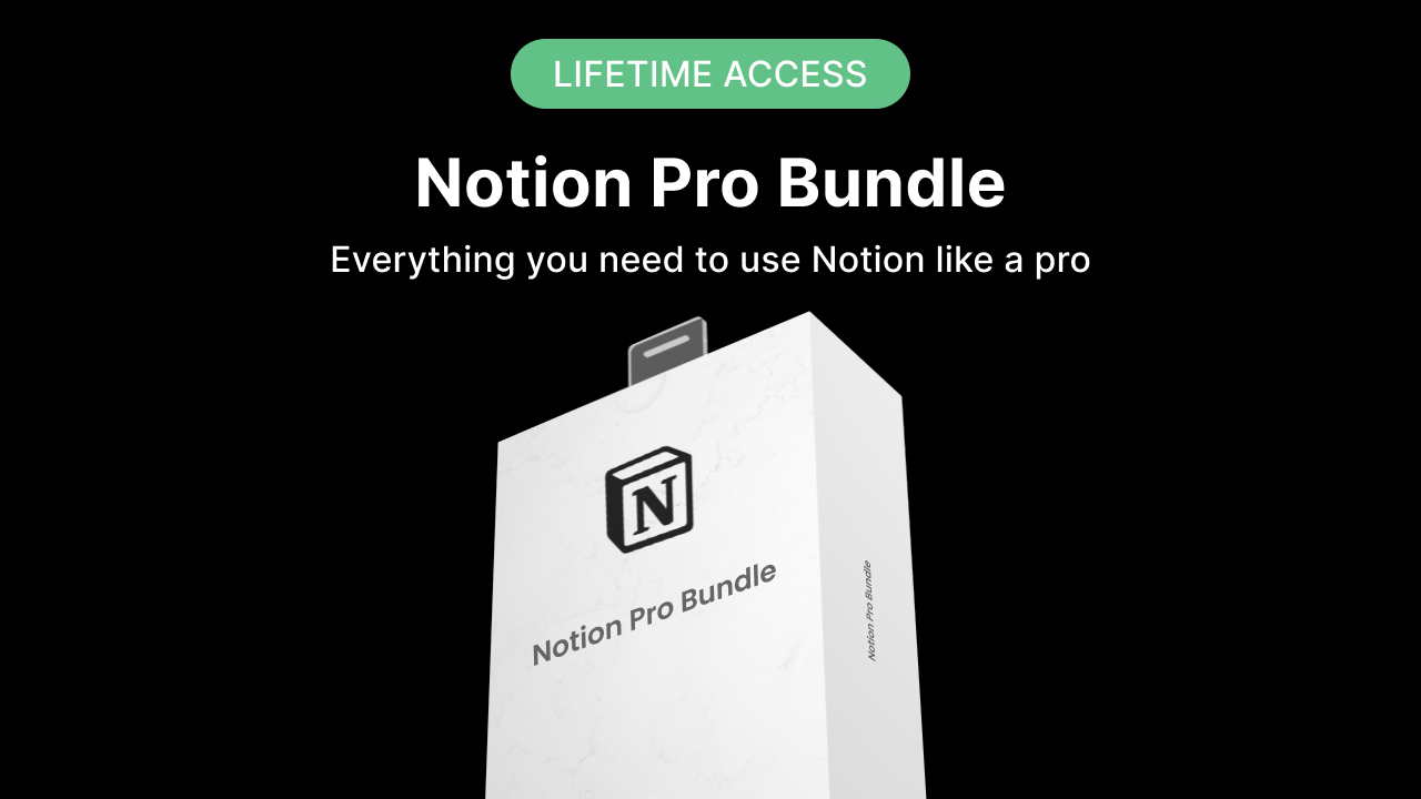 Get access to 11+ templates and any new content we add in the future for a simple one-time price. Plus, get a comprehensive course to master Notion in under 2 hours! For any Notion user Introducing our comprehensive course and dynamic templates, suitable for both beginners and advanced users. Our extensive curriculum covers the following key topics: Getting started with NotionDatabases - Organization made easyDatabase templates - Ready-made structures to kickstart your projectsKeyboard shortcuts - Boost your productivity with quick actionsButtons and other blocks - Enhance your Notion pages with interactive elementsCustom templates - Tailor Notion to fit your unique workflow Access to all our products To supercharge your productivity, we are offering 8 professional templates that you can use immediately: The Big Move - Stay organized during a relocationWishlist Tracker - Keep track of your desires and goalsReading List - Manage your literary adventuresResume Builder - Create a standout professional profileFood Tolerance Tracker - Monitor your dietary needsHome Guide for Guests & Petsitters - Effortlessly host guests and pets300+ Notion Product Ideas Co - Unleash your creativity with endless ideasProfit First Calculator - Gain financial insights and controlReading trackerMovies/TV show trackerVideo game tracker Lifetime access With your purchase, you gain lifetime access to all current and future templates released in our store. Never worry about additional costs - it's a 100% access guarantee to all our products! 100% refund in 30 days We are confident that you'll love our products and course, but if they don't meet your expectations, we offer a 100% refund within 30 days. No questions asked - we keep it simple and hassle-free. Take the leap, elevate your Notion skills, and unlock limitless possibilities today!